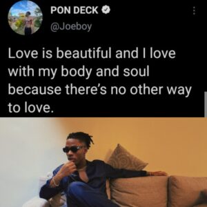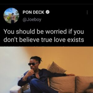 In his tweet , Joeboy said that people always feel Worried because they believe true love does not exist.