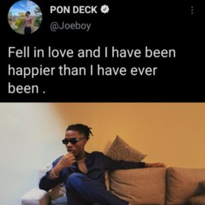 Popular Hip pop singer, Joeboy have revealed that he have been happier since he felt in love.