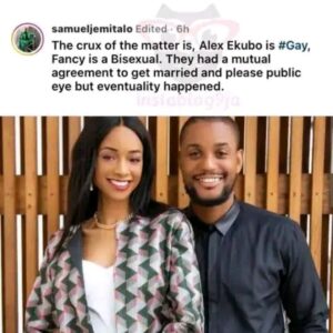 “The crux of the matter is Alex Ekubo is gay , Fancy is bisexual”.