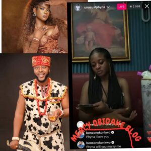 Nollywood actor, Benson Okonkwo, took to Bbnaija Winner, Phyna’s Instagram live session to propose marriage to her.