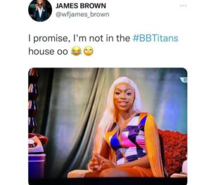 “I promise, i am not in the Bb Titans house oo 🤣🙄”.