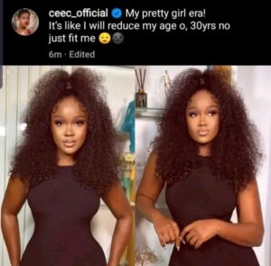 Ex Bigbrother Naija housemate, Cynthia Nwadiora better known as CeeC has subtly shaded Mercy Eke, who had allegedly lied about her real age.