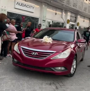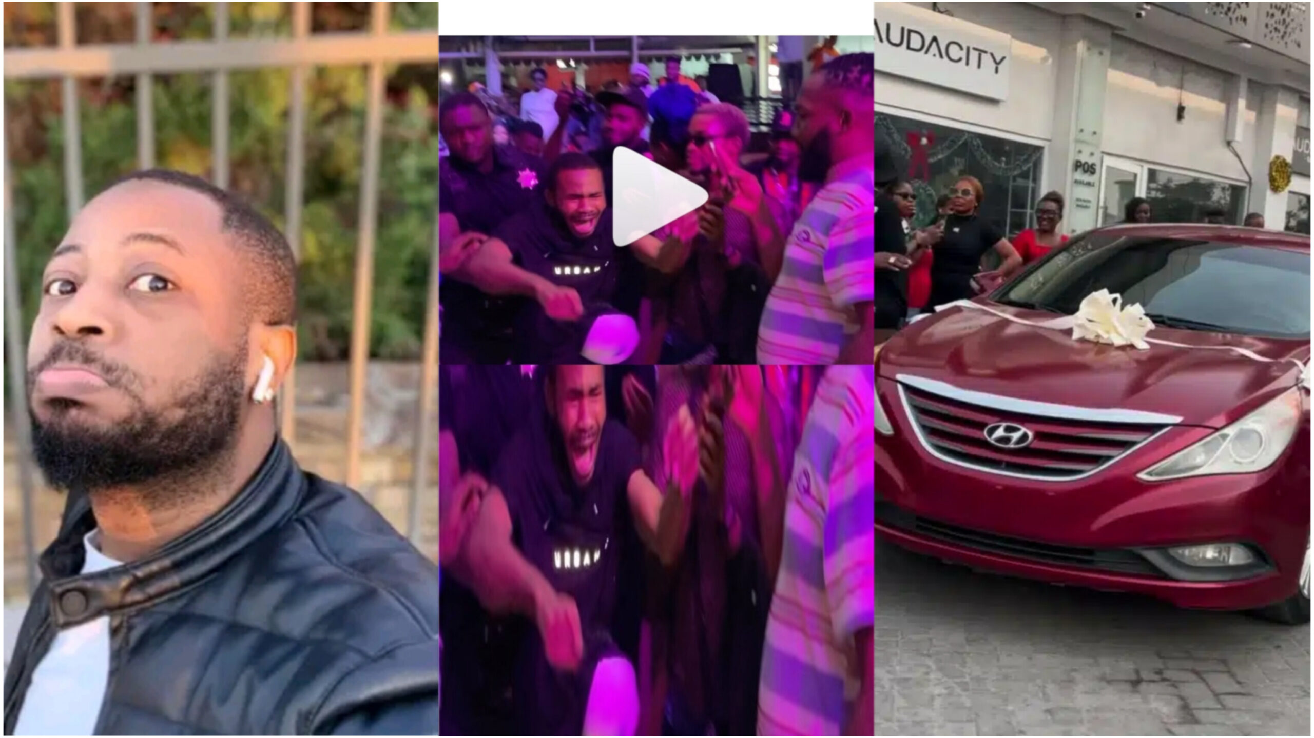 A young man has bursted into tears of joy as he wins a brand new car at popular blogger, Tunde Ednut’s birthday party.