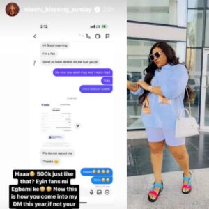 Popular Nollywood actress and brand influencer, Nkechi Blessing Sunday have received 5OO, OOO Naira from an anonymous fan.