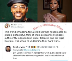 Reality tv star and brand influencer Kess Adjekpovu has expressed his disastisfaction with Netizens who refer to Big Brother female housemates as sluts. He stated that it is unfair to criticize women’s hardwork.