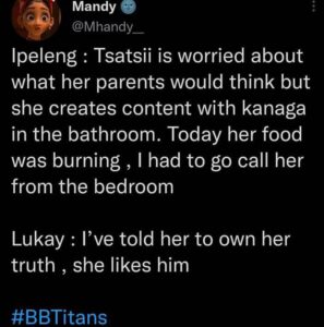 Tsatsii And kanaga Are Creating Content In The B@thr00m..She’s Worried About Her Parents” – BBTitans Ipeleng And Lukay Discuss Tsatsii And Kanaga (Details)