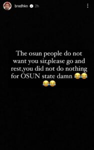 “The Osun people do not want you sir. Please go and rest, you did not do nothing for OSUN state damn.