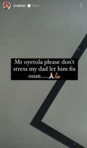 B-Red pleaded with him in another message to stop troubling his father and let him mend Osun rather.
