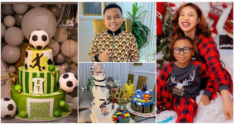 To make it memorable, Tonto Dikeh went all out for her son, who she had with her ex-husband Olakunle Churchcill ,as she ordered seven beautiful cakes with different design.
