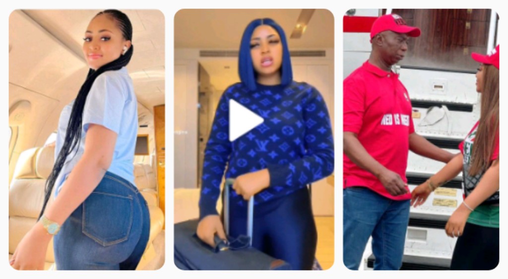 In the video, Regina Daniels dramatized the popular sound, which says anytime she tries to leave her husband after a big fight, she changes her mind, because he’s a good man, trying to leave a bad situation.