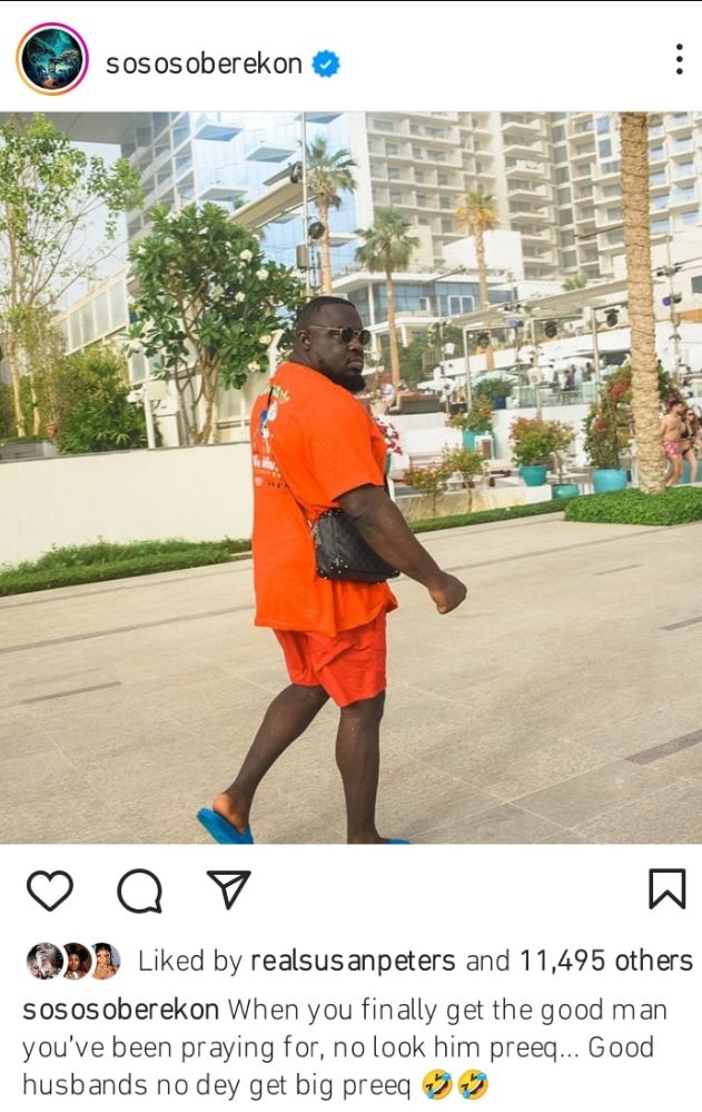 Soso Soberekon was of the opinion that a potential spouse should not have a large prick. When a lady discovers the guy of her dreams, he says, she shouldn’t pay attention to the size of his pr!ck since men who would make ideal husbands don’t have enormous pr!ck. He posted a picture which had the caption: