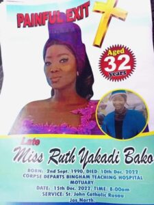 Late Ruth, a UNIJOS graduate, was st@bbed, r@ped and k!lled and her property carted away at Angwan Jarawa in Farin-Gada area of Jos last year December.