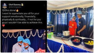 It could also be recalled that Damilola embarked on a 120 hours cook -a – thon to defeat Hilda Baci who currently holds the Guinness World Records longest marathon of 93 hours 11 minutes.