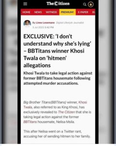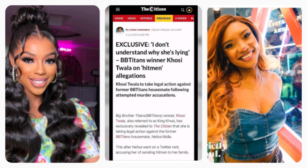 Big Brother Titans(BBTitans) winner, Khosi Twala, revealed to The Citizen that she is taking legal action against the former BBTitans housemate, Nelisa Msila.