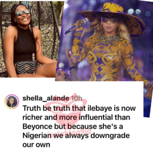 Truth be truth that Ilebaye is now richer and more influential than Beyonce but because she’s a Nigerian we always downgrade our own