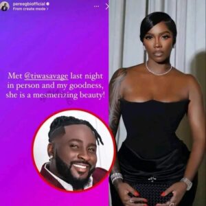 Big Brother Naija season 8 “All Stars” housemate, Pere Egbi has gushed over the beauty of Popular Nigerian female artist, Tiwa Savage.