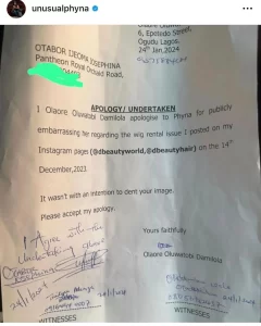 Reality tv star, Phyna has informed her millions of followers that the hair vendor who accused her of failing to return a rented wig has apologised to her, this was after she wrote a petition to the Nigerian police.