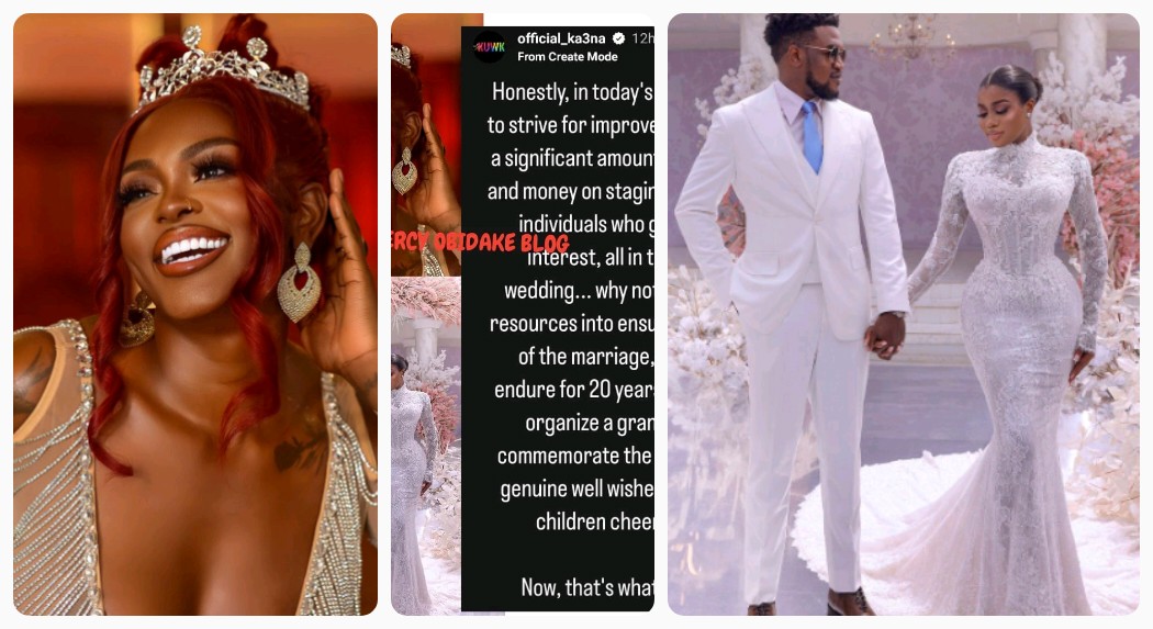 Fashion designer, Veekee James has continued to come under criticism over her elaborate wedding ceremonies for weeks now. Reality tv star, Ka3na has joined millions of Nigerians who criticised Veekee for spending so much money on a wedding for the sole purpose of trending on social media. Veekee did introduction, court, traditional and white wedding, sending millions of naira on designer wears, refreshment, locations and media.