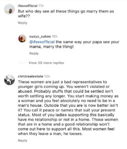 “Why is it a problem that a woman decides to move on with her life and doing her thing? Why do you think it’s OK for you to come and tell her what to do? How about going to tell the man involved, and tell him “go back to your wife’s house” or it doesn’t work that way?