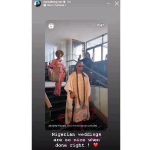 He captioned a video from Yhemo Lee’s wedding with the comment, “Nigerian weddings are nice when done right”.