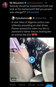 “Nobody should be treated this way!!! See this savagery!!! Will you people ever change?” he cried, tagging the official police handle, @PoliceNG.