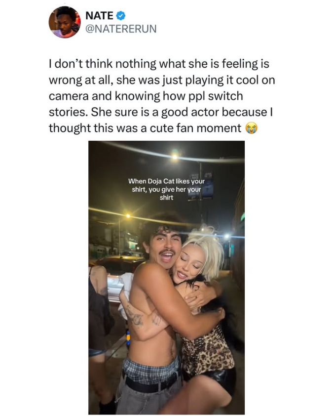 American Rapper, DojaCat is catching heat after a fan interaction during a recent meetup where she wrapped her leg around him for a photo.