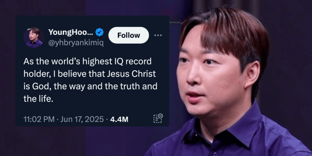 YoungHoon Kim, who identifies himself on his X profile as “the World’s Highest IQ Record Holder” and lists his intelligence quotient as 276, proclaimed his Christian faith in a statement posted to X on Tuesday.