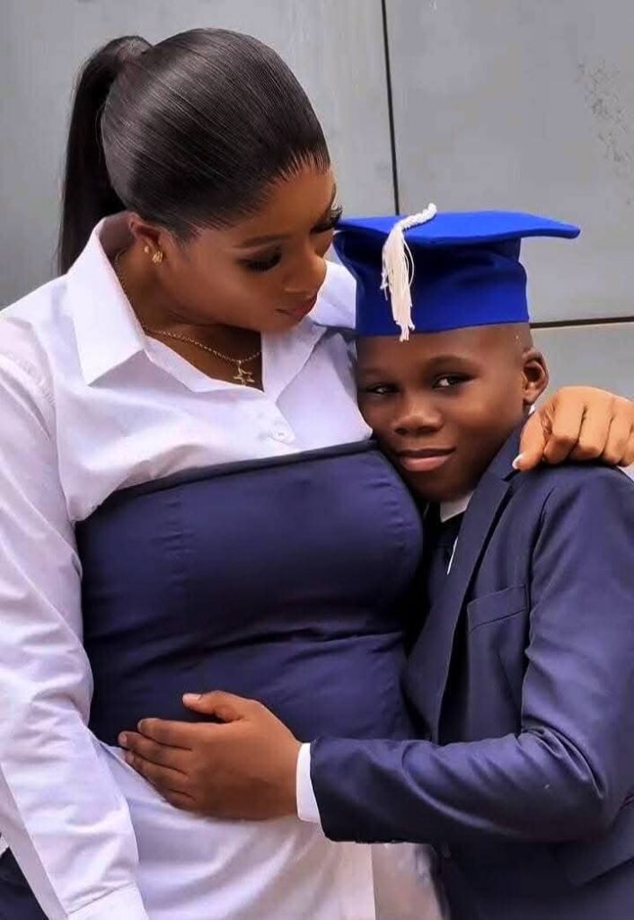 Jennifer Odonwodo, the wife of late Nollywood actor Junior Pope, is in a grateful and emotional mood as she celebrates her first son, Jason, on his graduation from primary school.