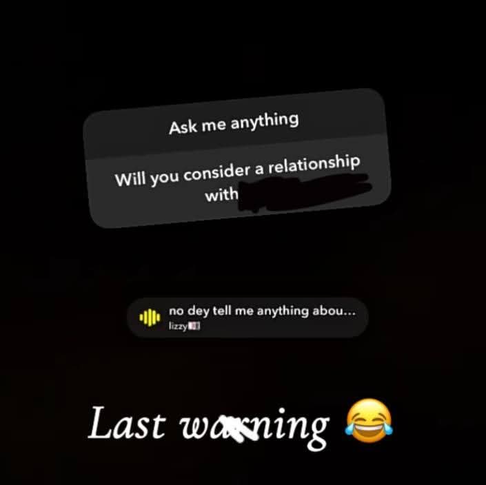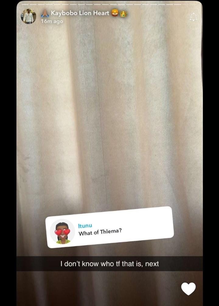 In a separate Q&A, Kaybobo was asked by a fan identified as Itunu, “What of Thelma?” The reality star fired back with a blunt response: “I don’t know who tf that is, next.”