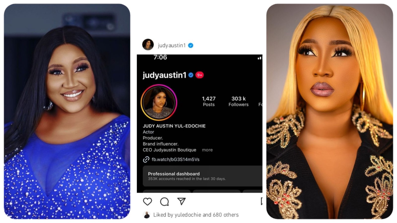 Judy Austin, the wife of popular Nollywood actor, Yul Edochie has finally been verified on Instagram.