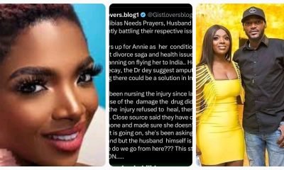 Nollywood actress Annie Idibia is reportedly battling a severe health crisis as her leg injury, allegedly worsened by excessive drug use, has worsened to a critical...