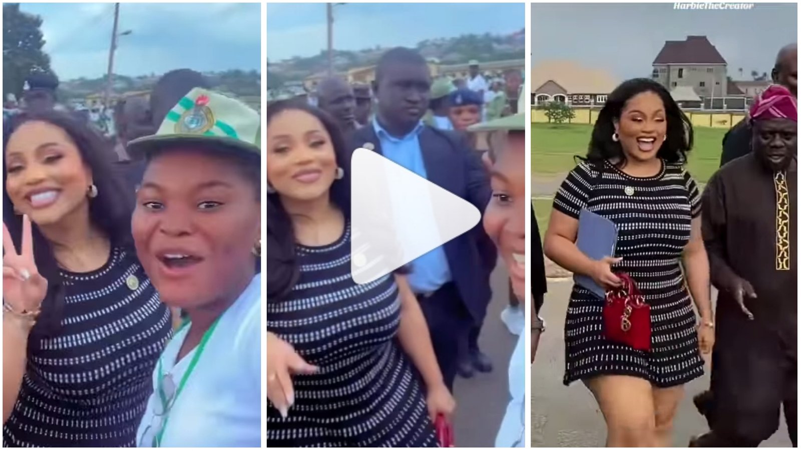 A video has surfaced online, showing Adenike Adeleke’s heartwarming reception at the NYSC camp in Osun state, where she received a rousing welcome from NYSC officials and corps members.