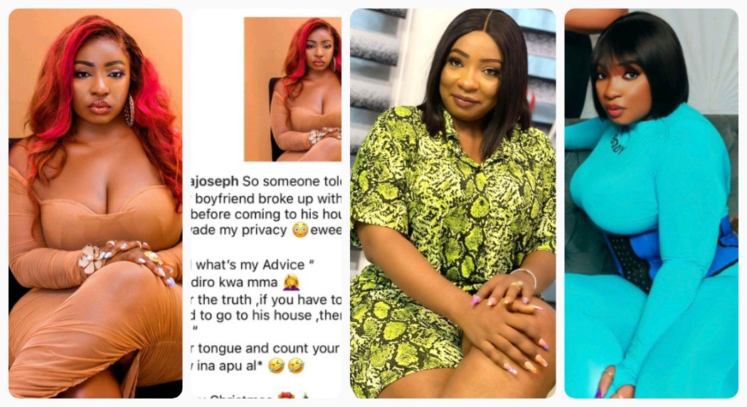 That her boyfriend broke up with her because ,she didn’t call him before coming to his house 😳according to him don’t invade my privacy 😳eweee inukwa 🤣🤣taaaa