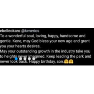 “To a wonderful soul, loving, happy, handsome and gentle. Kene, may God bless your new age and grant you your hearts desires.