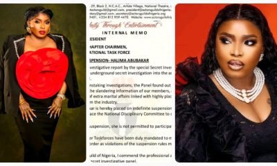 The Actors’ Guild of Nigeria (AGN) has suspended actress Halima Abubakar indefinitely following an extensive investigation. The AGN claimed in a statement that their investigation revealed...