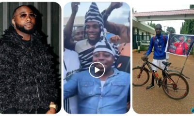 Viral cyclist, Emmanuel Myam, alias Emmiwuks who began a road trip from Benue to Lagos on a bicycle to meet his mentor, Davido, has finally arrived...