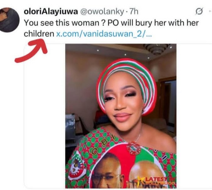 The controversy began after a user with the X handle Olori Alayiuwa posted a photo of Peter Obi’s wife, Margaret, with the caption: “You see this woman? PO will bury her with her children.”