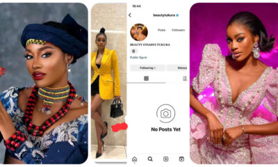 Reality TV star and 43rd Miss Nigeria, Beauty Etse Tukura has left fans worried as she deactivated all her social media accounts after leaving a cryptic...