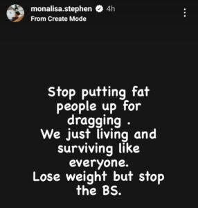 Reacting to Teni’s revelation, Monalisa Stephen adviced Teni to stop putting up fat people for drags.