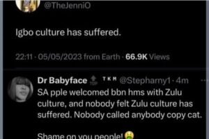 In her latest tweet, Jenny o declared that Igbo ethnic tribe have suffered , she didn’t disclose the reason for her statement, however, it was same time, Thabang Nigerian fans welcomed him into the country while dressed in Igbo attires.
