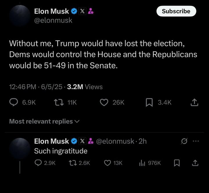 In retaliation, Trump warned he might withdraw federal subsidies and contracts benefiting Musk’s companies, including SpaceX and Tesla. He accused Musk of having “Trump derangement syndrome,” implying that personal hostility was fueling Musk’s opposition.